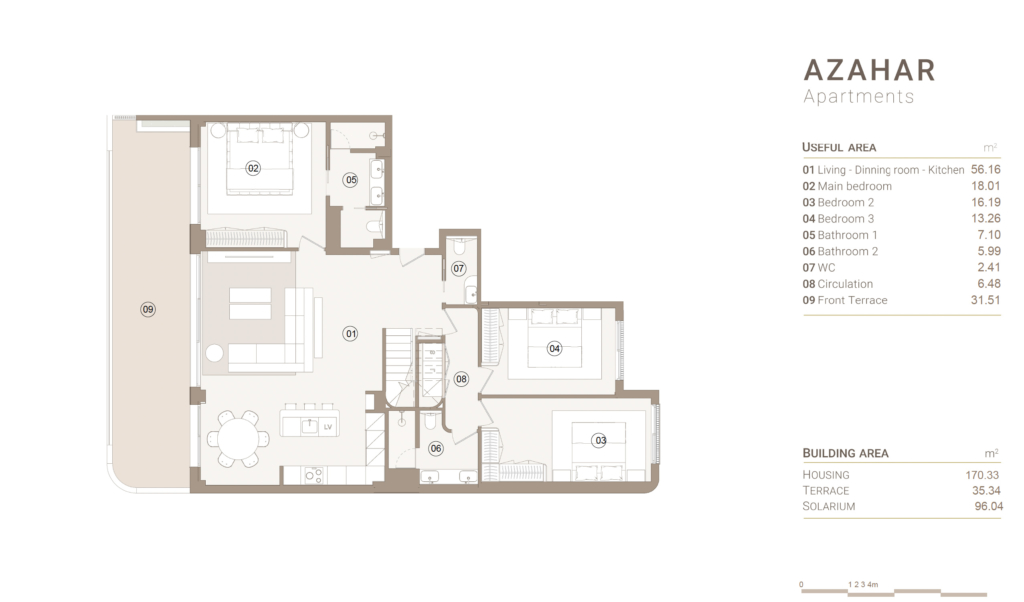 The Azahar Apartments, nestled in the Limonero Community, blend Mediterranean charm with a sleek, modern design.