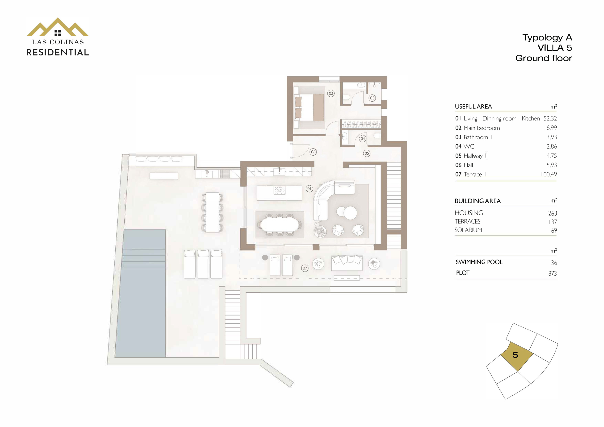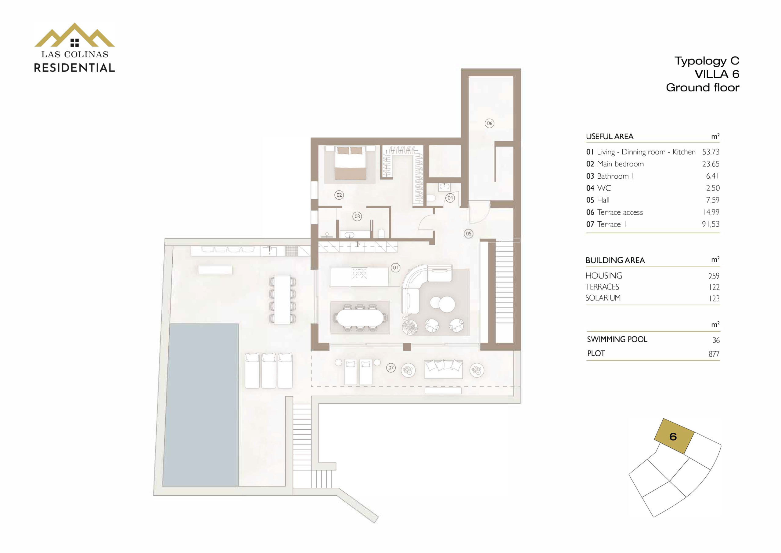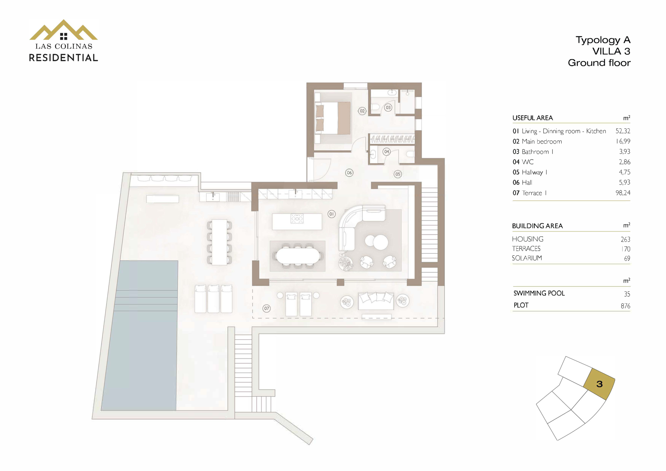 Introducing Arborea, a new development featuring six exclusive villas nestled in the heart of nature at Las Colinas Golf & Country Club. These modern 3-bedroom, 3-bathroom villas offer 263 m² of space on generous plots of 871 m². Each home is spread across two levels with open views of the forest and surrounding greenery, and includes spacious terraces, a private pool, a landscaped garden, and private parking.