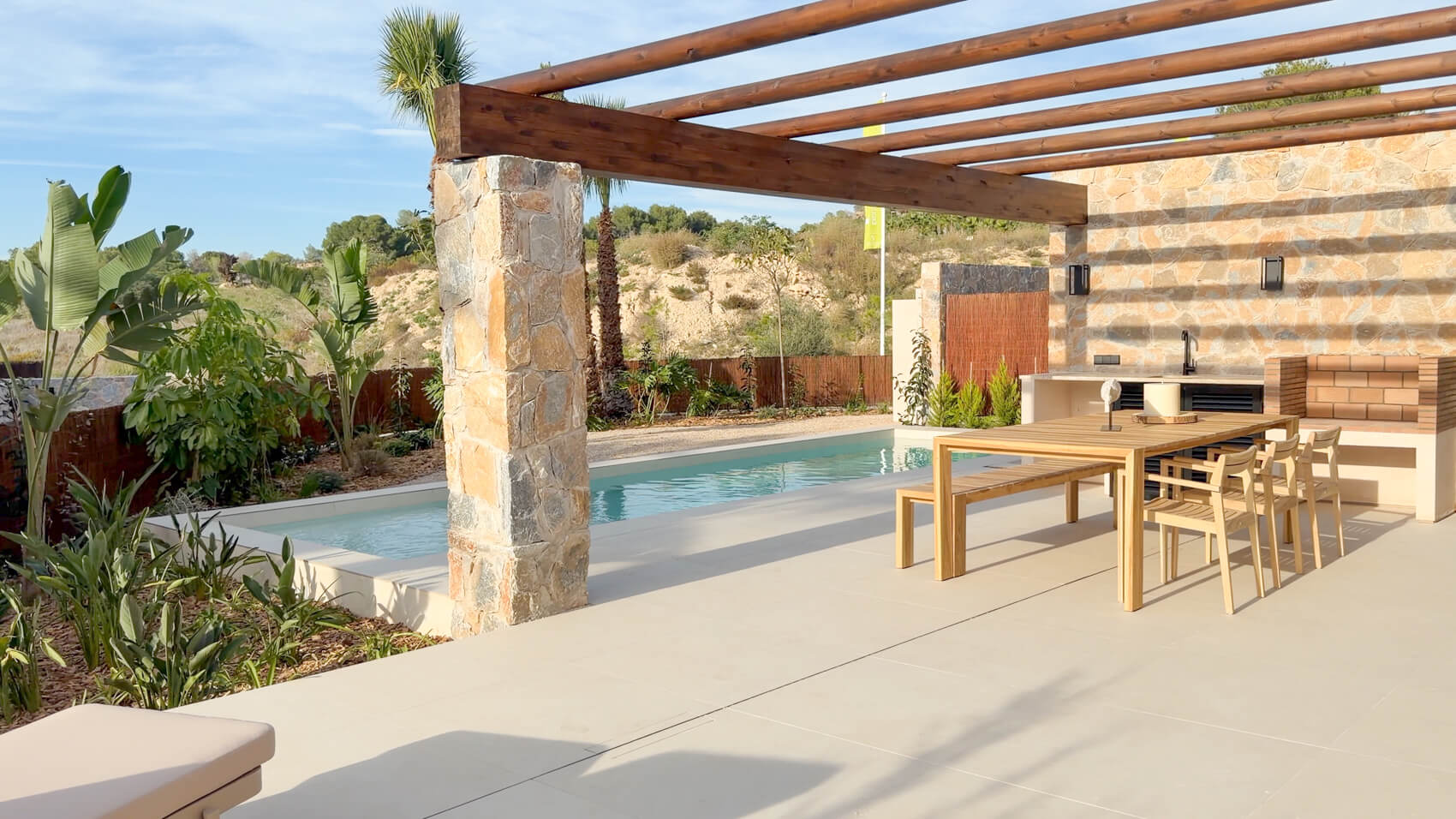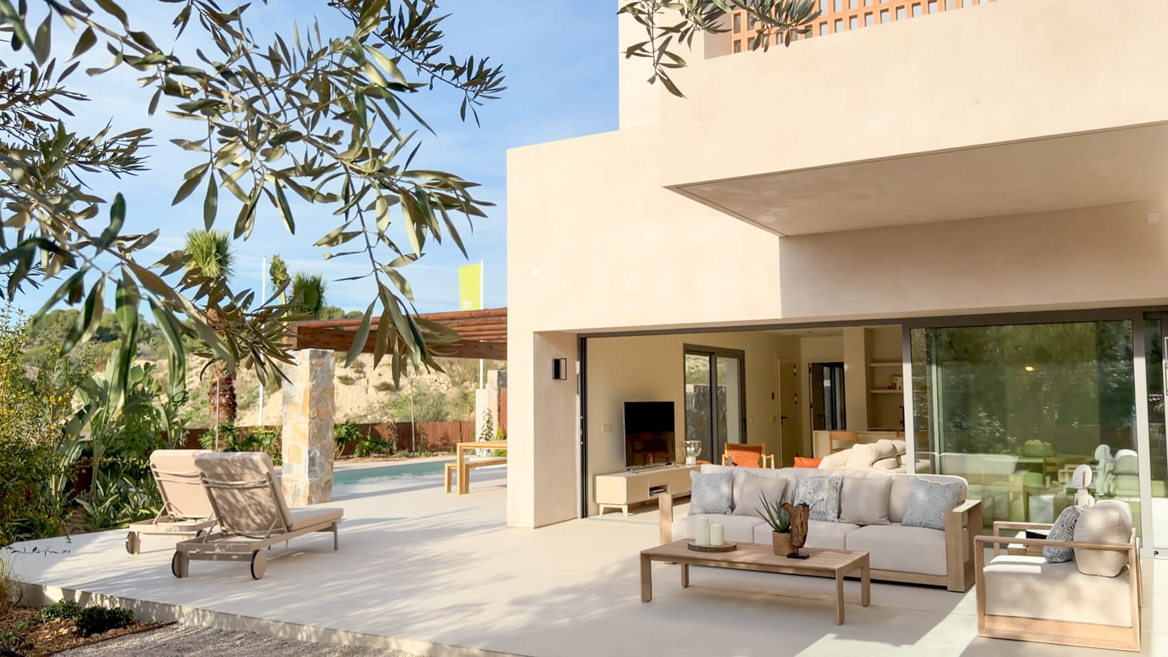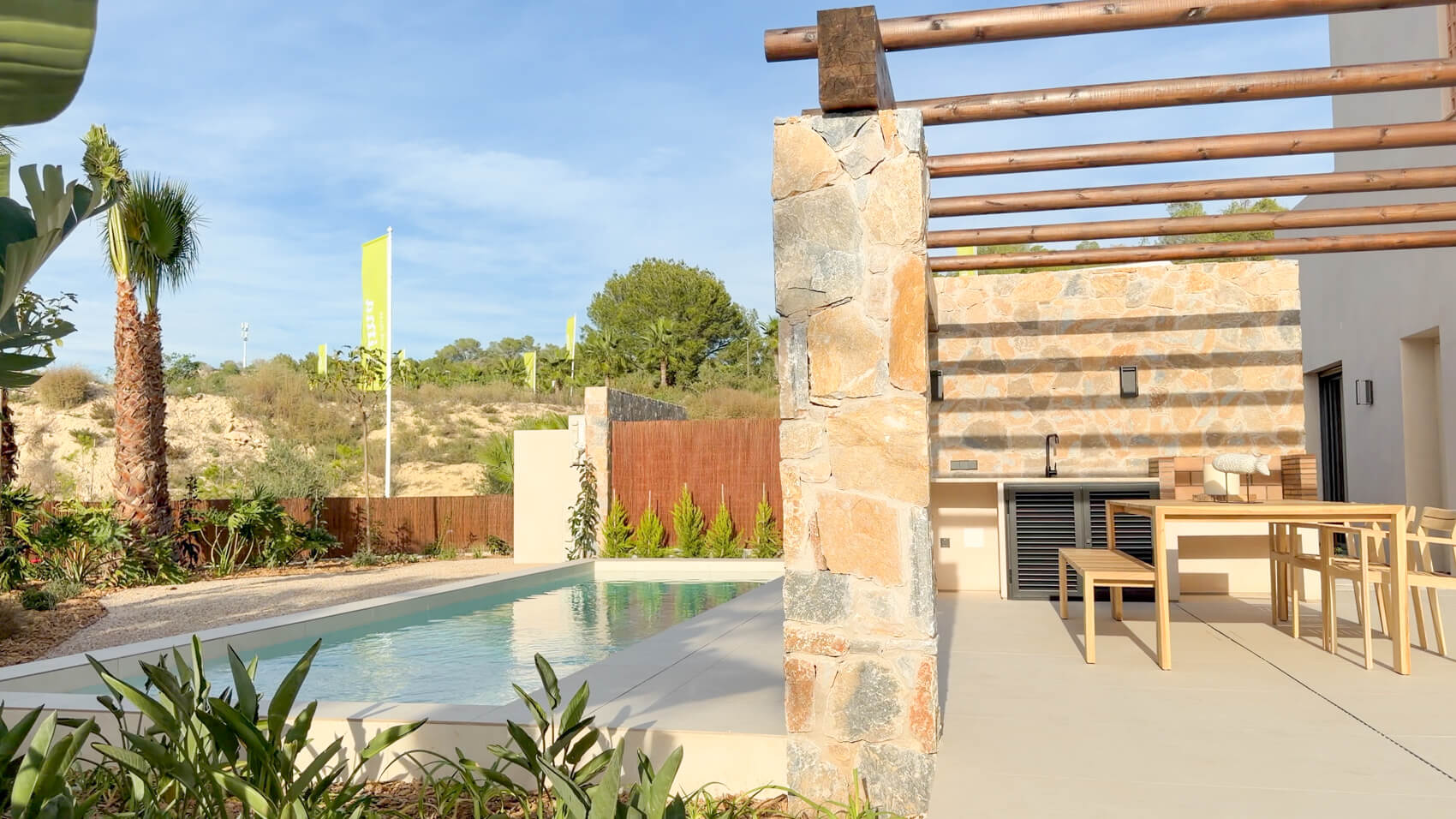 The new Larus semi detached villas feature the renewed design integrating new Mediterranean and modern elements. These villas are located in the Lima community and benefit from good size gardens, terraces plus private swimming pools.