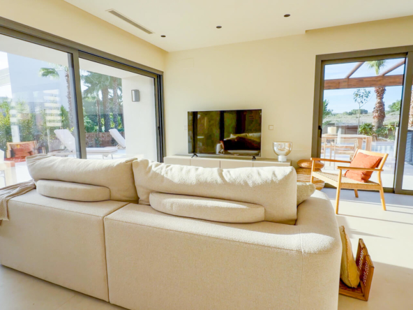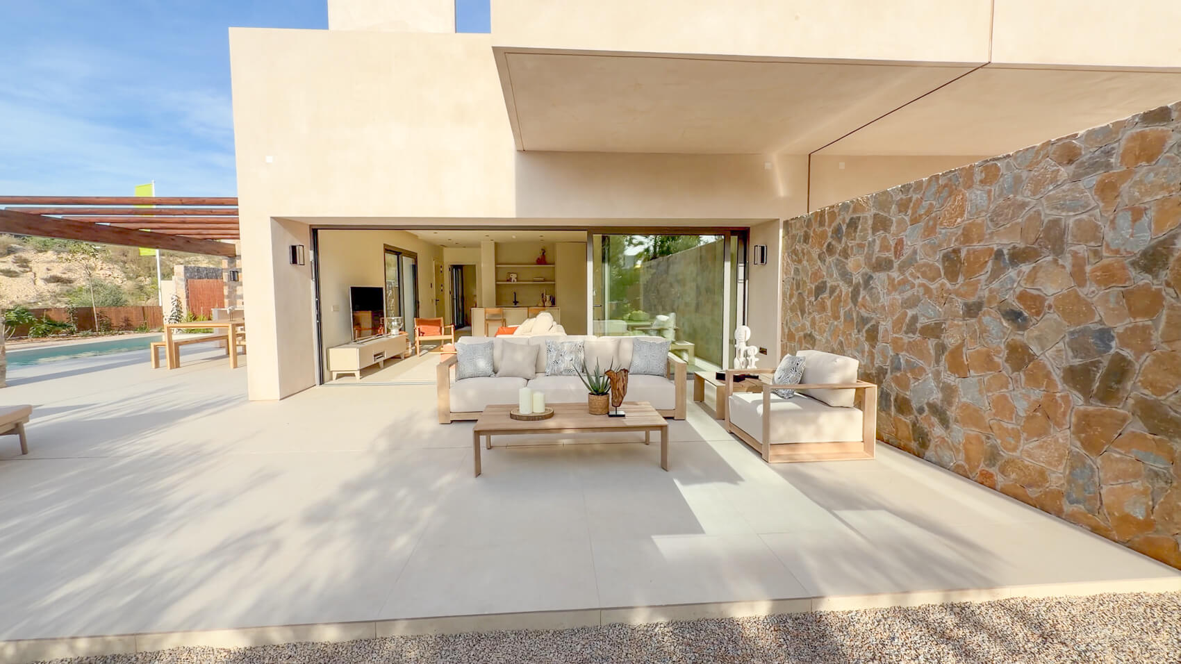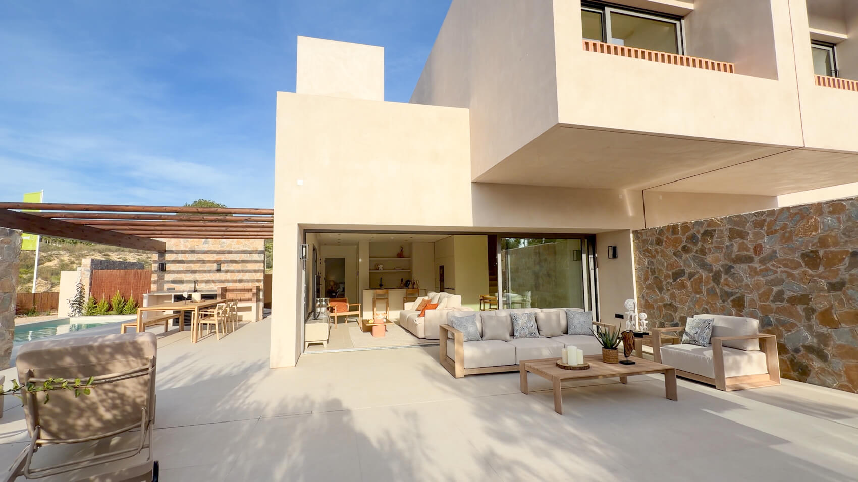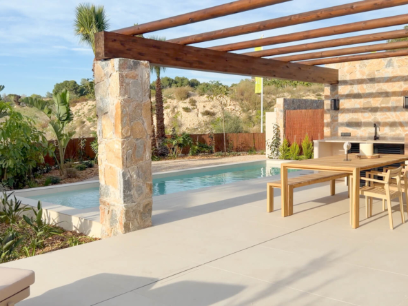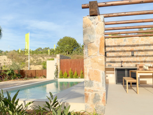 The new Larus semi detached villas feature the renewed design integrating new Mediterranean and modern elements. These villas are located in the Lima community and benefit from good size gardens, terraces plus private swimming pools.
