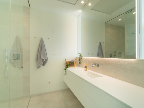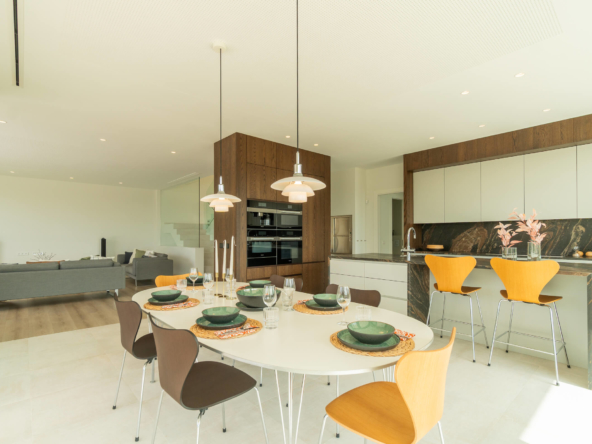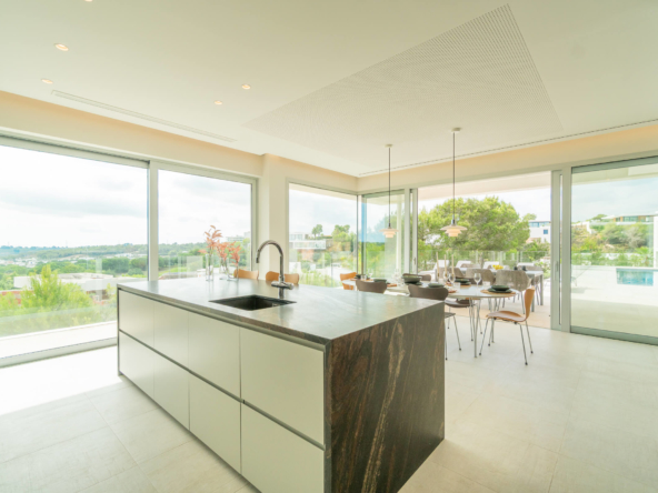 Built over three levels, the villa combines contemporary architecture with high-end luxury finishes and multiple terraces that maximize light, space, and panoramic views. The property includes a private garage for two cars and a versatile basement ideal for a cinema room, office, gym, or additional living space. Premium materials are used throughout, complemented by top-of-the-line kitchen and bathroom appliances. Comfort is ensured year-round with air conditioning, underfloor heating throughout the entire villa, and an integrated solar panel system, making this home both luxurious and efficient.