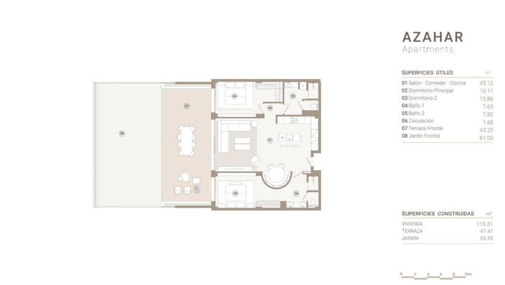 The Azahar Apartments, nestled in the Limonero Community, blend Mediterranean charm with a sleek, modern design.