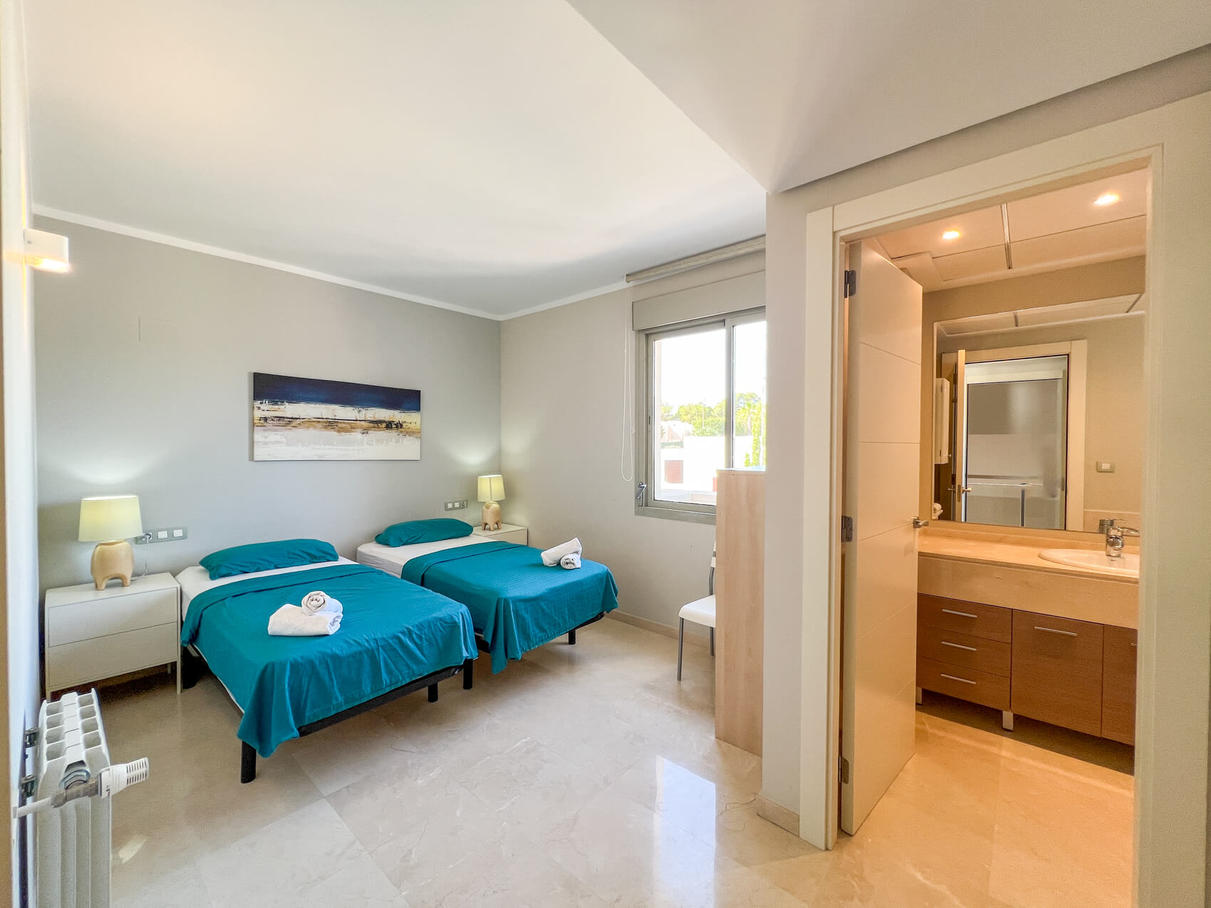 This villa boasts 3 spacious and well-appointed bedrooms, including two en-suites upstairs and an additional full bathroom on the ground floor for added convenience.