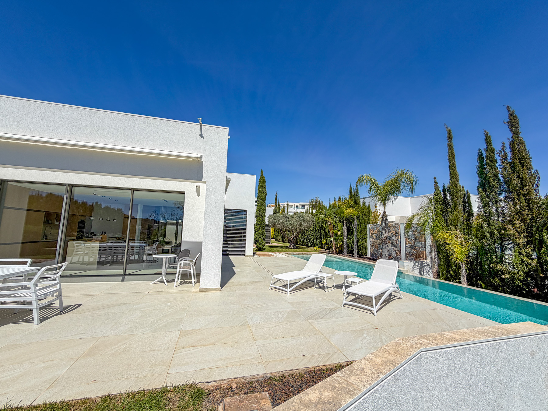 This modern villa features space and functionality combined with big windows offering amazing views . The high quality finish of the villa is shown throughout the property, with no expense sparred in creating an exciting modern villa.